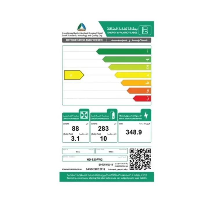 ثلاجة بابين 13 قدم ميديا – أبيض HD520FW2