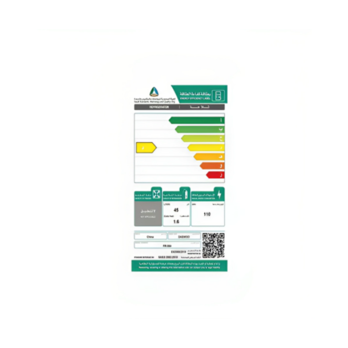 - غاز التبريد : R600 A صديق للبيئة