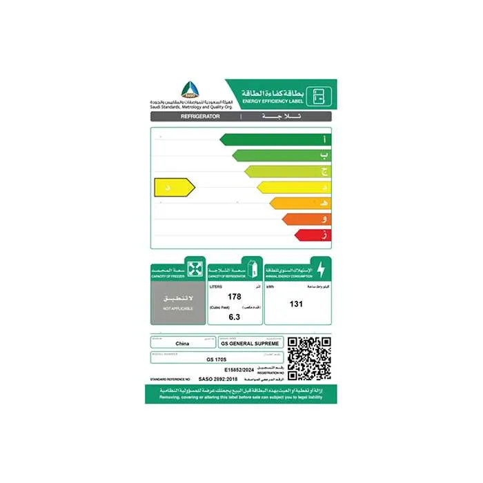 ثلاجة باب واحد 6 قدم جنرال سوبريم – فضي GS170S
