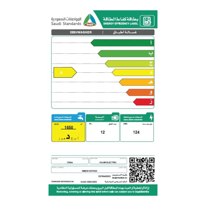 جلاية صحون هام 12 مكان – 7 برامج ديجيتال – أبيض Hmdw1207w23