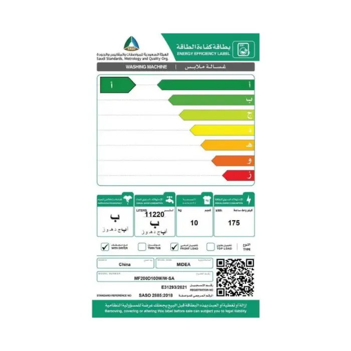 تم تصميم غسالة امامية ميديا 10كيلو تجفيف 7كيلو – أبيض ليجمع بين الأداء القوي والكفاءة العالية مع تقليل استهلاك الطاقة. هذا يضمن توفير واضح في فاتورة الكهرباء دون التأثير على قوة التبريد أو التدفئة، مما يجعله خيارًا عمليًا وموفرًا للطاقة للعائلات التي تبحث عن الأداء القوي مع الاستدامة الاقتصادية والبيئية