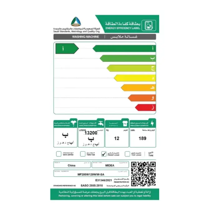 غسالة 12 كيلو ميديا فتحة أمامية واي فاي – أبيض MF200W120W/W-SA