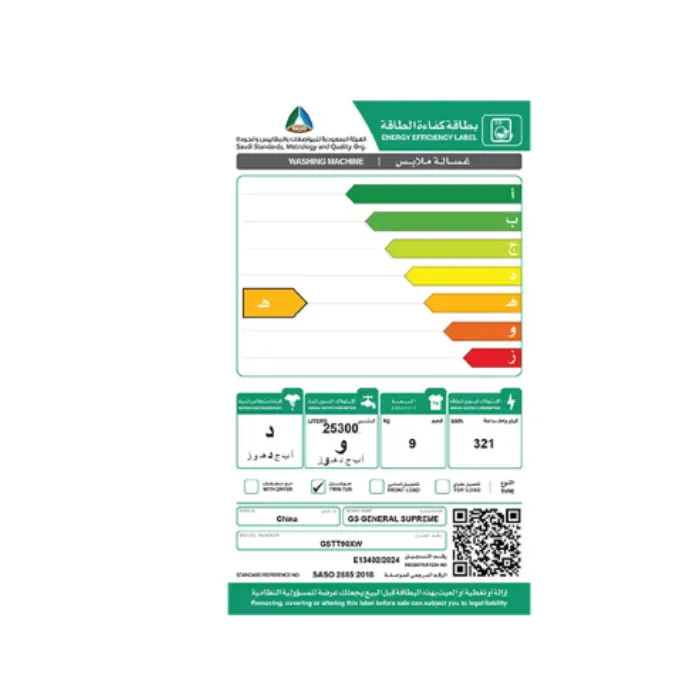 غساله 9 كيلو جنرال سوبريم حوضين – أبيض GSTT90XW
