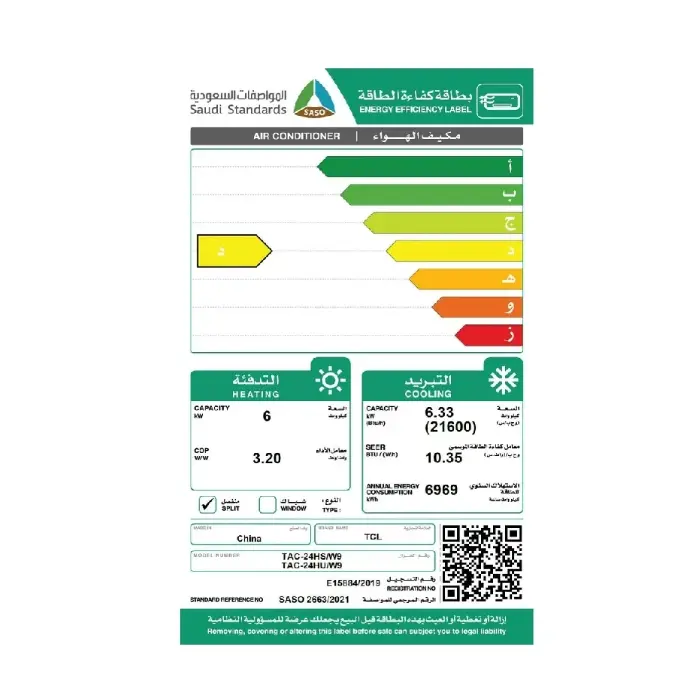 مكيف اسبليت تي سي ال 21600 وحدة – حار / بارد |