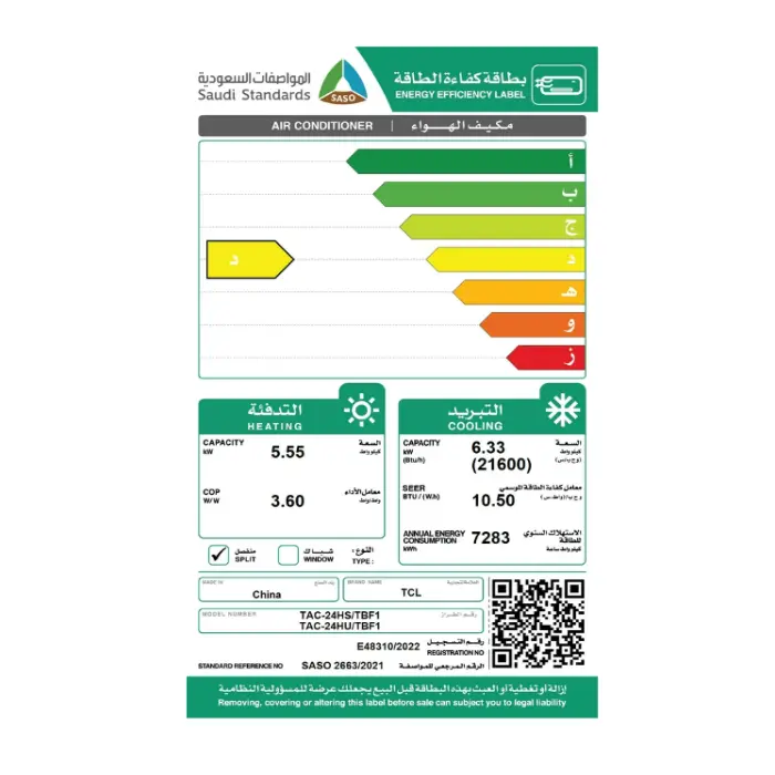 مكيف تي سي ال سبليت 21600 وحدة – حار / بارد |