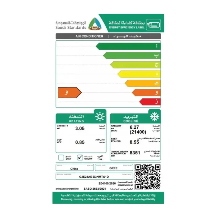 يعمل مكيف جري شباك بغاز R410a الآمن على طبقة الأوزون، والذي يوفر كفاءة تبريد أعلى مع استهلاك أقل للطاقةويحافظ على البيئة.