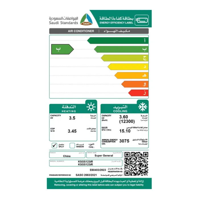 مكيف سوبر جنرال سبليت أونو 12300 وحدة – حار/بارد KSGS123GER