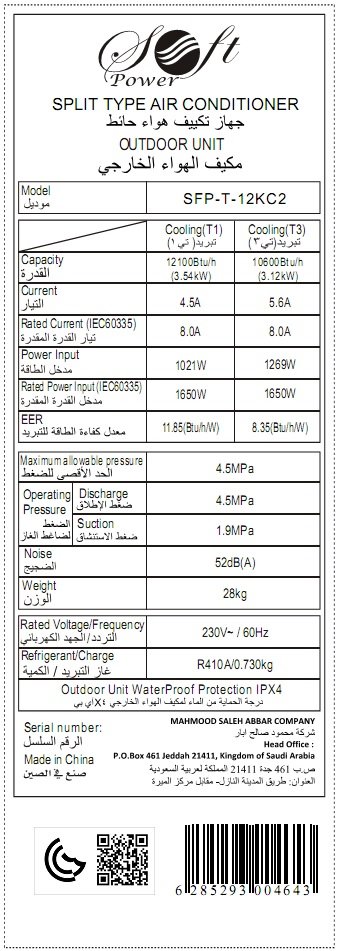 خصائص مكيف سوفت باور سبليت 21000 وحدة – بارد :