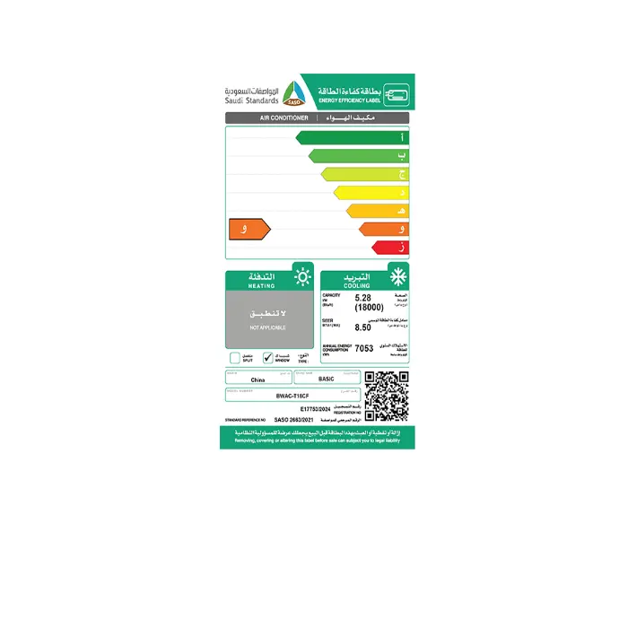 | الصنف | مكيف 18000 وحدة بيسك شباك فريون – بارد |
