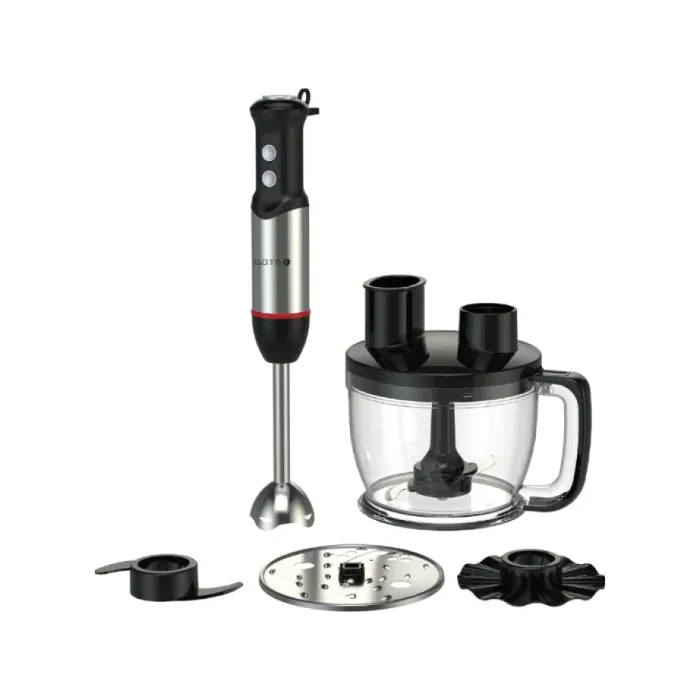يأتي الخلاط اليدوي دوتس 6*1 500 وات مع مجموعة ملحقات متعددة الاستخدامات تساعدك على تنفيذ أكثر من وظيفة مثل الخلط والفرم والخفق، مما يجعله جهازًا عمليًا يلبي احتياجات المطبخ اليومي بكفاءة عالية.