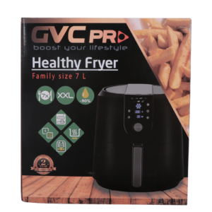 استمتع بأشهى الاكلات الصحية مع القلاية الهوائية جى فى سى برو 7 لتر 1800وات بعيدا عن الزيوت و الدهون حيث تستطيع أن تقوم بقلي العديد من الاطعمة بدون نقطة زيت واحدة