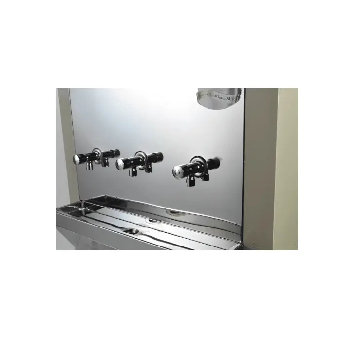 تأتي برادة مويه الغدير بـ 3 صنابير (بزابيز) مصنوعة من النيكل المتين المقاوم للصدأ والتآكل. تتميز هذه الصنابير بجودتها العالية التي تتحمل الاستخدام المتكرر والقوي في الأماكن العامة، كما أنها مصممة لمنع التنقيط وضمان تدفق سلس للمياه. يضفي طلاء النيكل مظهراً لامعاً ونظيفاً، ويضمن عدم تفاعل المعدن مع المياه، مما يحافظ على نقاء الطعم وصحة المستخدمين.
