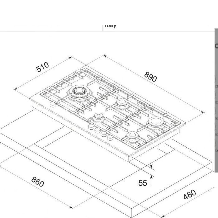 سطح غاز بيلا بلت ان 90 سم – 5 عيون – إيطالي