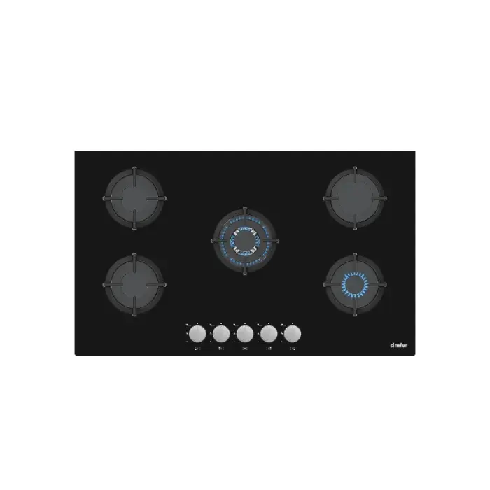 بوتاجاز مسطح غاز سيمفر بلت ان 5 شعلات 90 سم – اسود H9500NGSSP