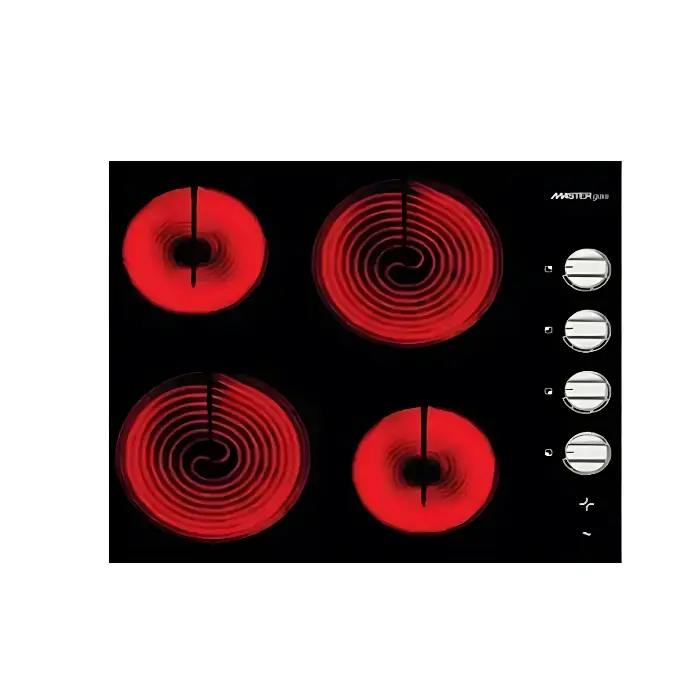مزود بوتاجاز مسطح كهرباء ماستر جاز بسطح سيراميك أملس يسهل مسح البقع والدهون بعد الطهي، مما يقلل من الجهد المبذول في التنظيف ويحافظ على مظهر المطبخ نظيفًا وأنيقًا.