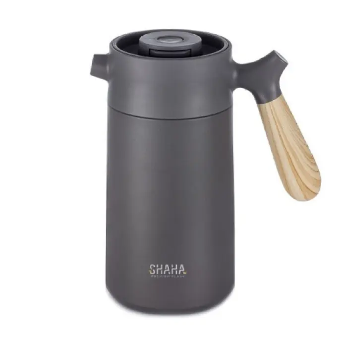 ترمس شاها ليس مجرد وعاء للمشروبات، بل قطعة فنية صغيرة. اللون الرمادي الهادئ والمقبض الخشبي الطبيعي يعطيان لمسة من الدفء والأناقة لأي مكان تضعه فيه، سواء على مكتبك أو على طاولة القهوة في المنزل.