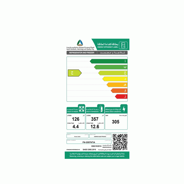 - الاستهلاك السنوى من الطاقة : 305 كيلو وات