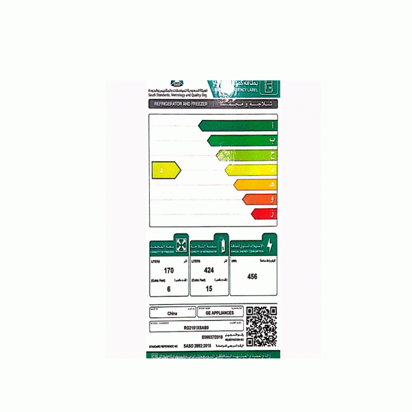 • استهلاك الطاقة السنوي: 456 كيلو وات/ساعة