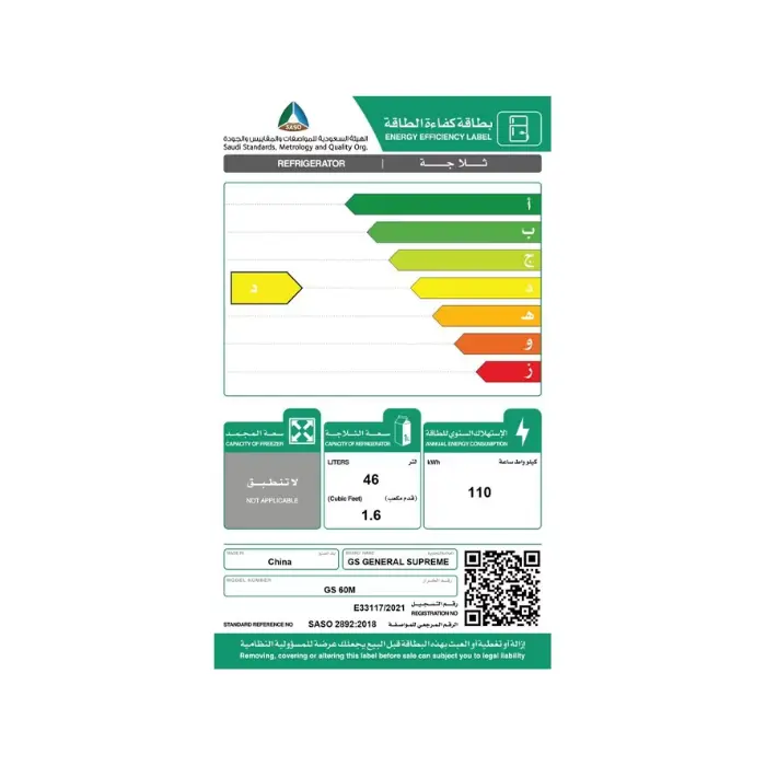 تعمل ثلاجة جنرال سوبريم بهدوء ملحوظ يجعلك تنساها أثناء التشغيل، مع كفاءة عالية في استهلاك الكهرباء، فتمنحك أداءً مستمرًا دون تحميل فاتورة الكهرباء أعباء إضافية.