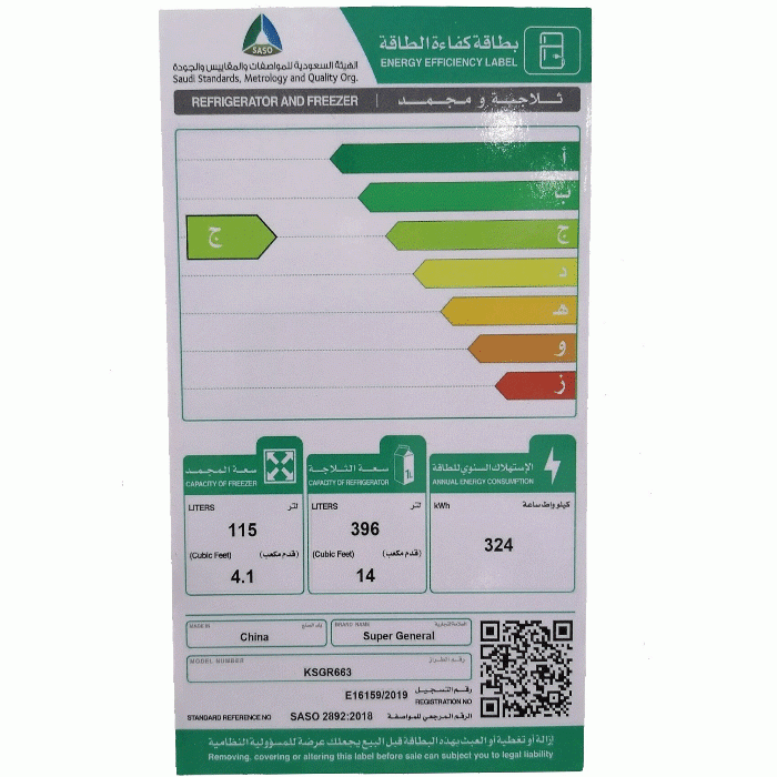 - غاز التبريد المستخدم : R600a لا يلوث البيئة