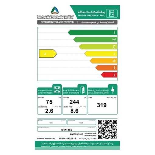 - السعة اللترية : 319 لتر