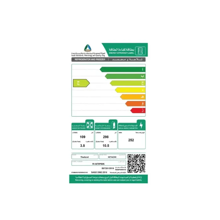 ثلاجة 14 قدم هيتاشي بابين انفرتر _ أبيض