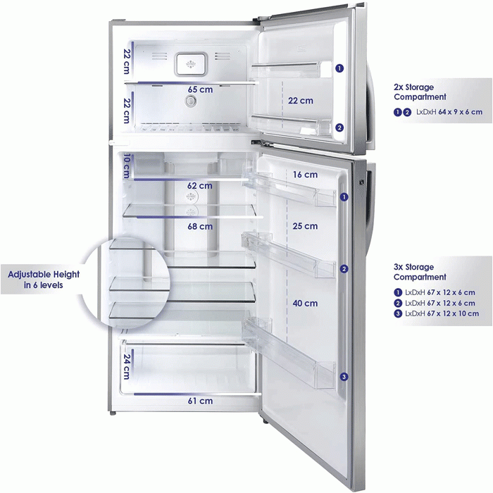 • إمكانية تعديل او إزالة الأرفف الداخلية للتحكم بالمساحات