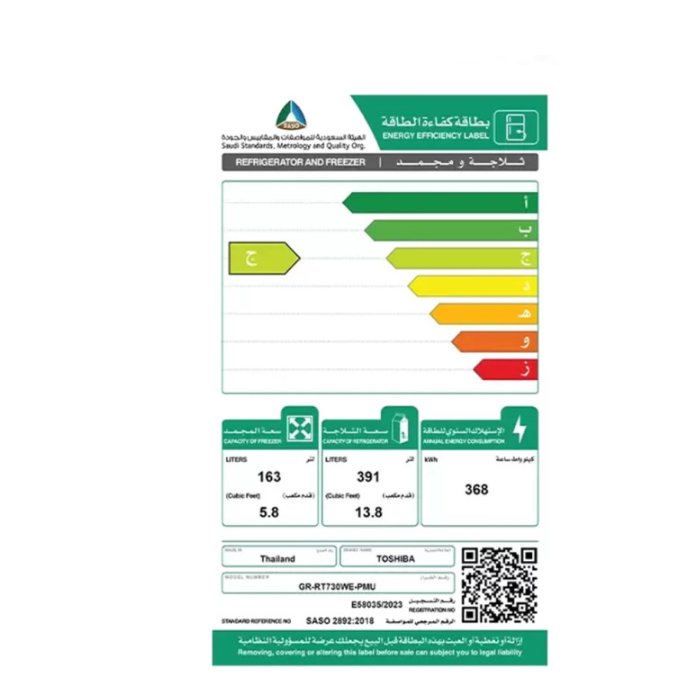ثلاجة 19 قدم توشيبا بابين – انفرتر – أبيض GR-RT730WE-PMU(01)