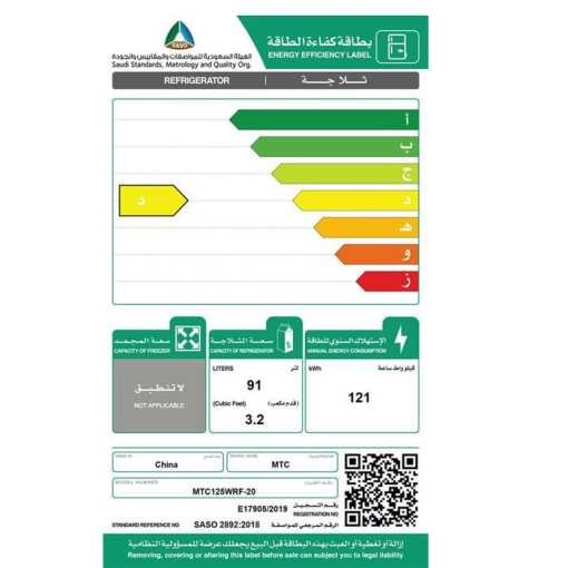 ثلاجه باب واحد 3.2 قدم MTC – أبيض