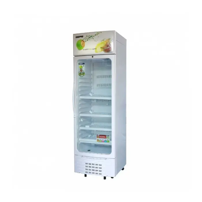 ثلاجه عرض جيباس مزودة بباب زجاجي شفاف يتيح عرض المنتجات بوضوح دون الحاجة إلى فتح الباب، مما يساعد في الحفاظ على درجة الحرارة الداخلية.