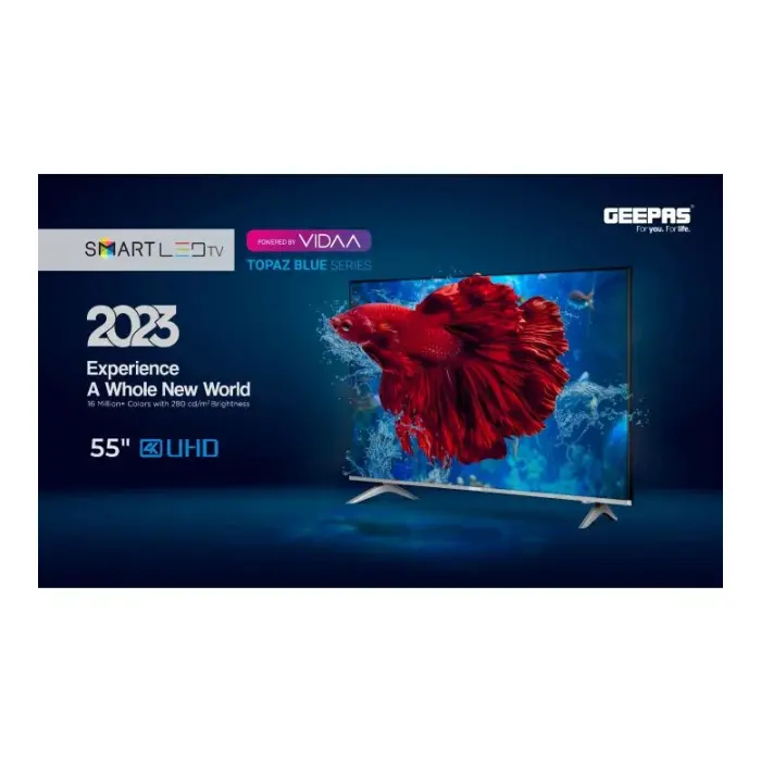تدعم شاشة 55 بوصة جيباس 4K UHD – LED سمارت زاوية مشاهدة واسعة تضمن بقاء الألوان واضحة وجودة الصورة ثابتة حتى عند المشاهدة من الجوانب. هذه الميزة تجعلها مثالية للمشاهدة العائلية أو في التجمعات، حيث يمكن للجميع الاستمتاع بنفس الجودة من مختلف أماكن الجلوس.