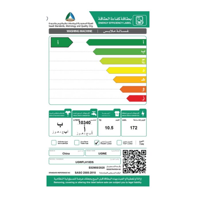غسالة تعبئة امامية 10.5 كيلو يوجين انفرتر - ابيض UGWFLH10W