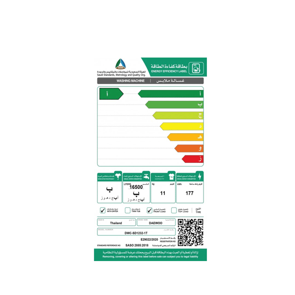 مواصفات غسالة امامية دايو 11 كيلو – أبيض :