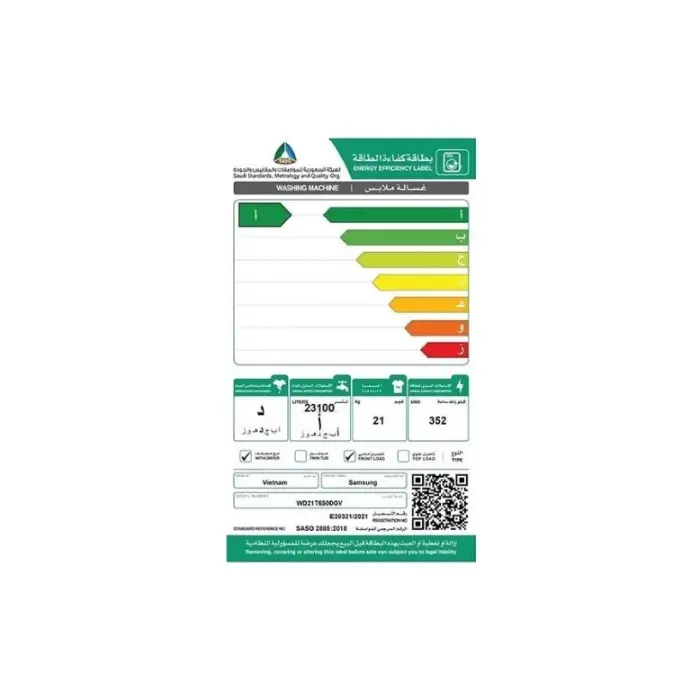 - سعة : الغسيل : 21 كيلو