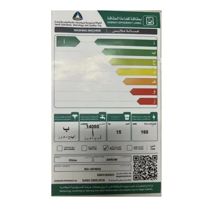 بفضل سعتها الضخمة التي تصل إلى 15 كيلو، تتيح لك غسالة فتحة امامية ارو غسل كميات كبيرة من الملابس في دورة واحدة، تعتبر هذه السعة مثالية للعائلات الكبيرة، حيث توفر الوقت والجهد وتسمح بغسل الألحفة والبطانيات والمفارش بكل سهولة، مما يقلل من عدد دورات الغسيل الأسبوعية ويساعدك على إنجاز المهام المنزلية الشاقة في وقت قياسي جداً.