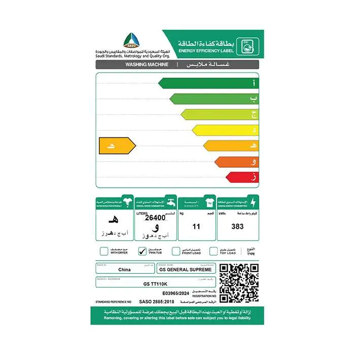 مع سعة 11 كيلو للغسيل وسعة عصر 7 كيلو، تستطيع غسالة ملابس حوضين جنرال سوبريم التعامل مع كمية كبيرة من الملابس دفعة واحدة. هذا يعني أنك لن تضطر إلى تقسيم الملابس إلى عدة دورات، ما يوفر وقتك ويقلّل استهلاك الماء والكهرباء. الغسالة مناسبة للعائلات المتوسطة والكبيرة، وتستوعب الأقمشة الثقيلة والحساسة على حد سواء.