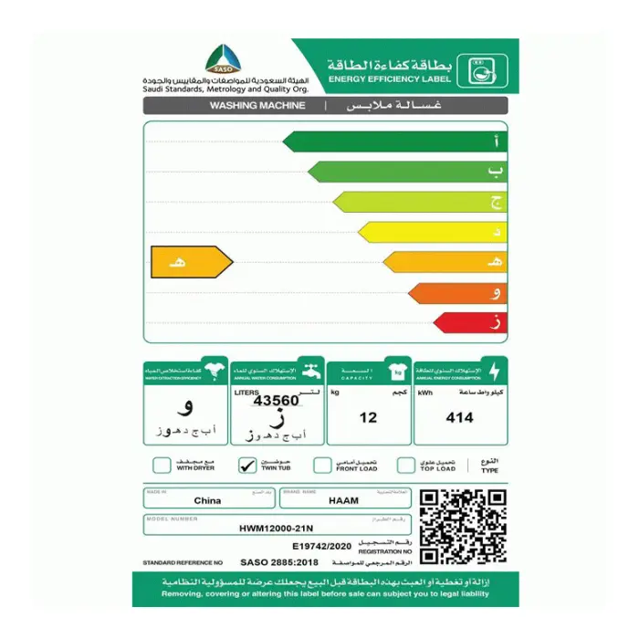 غسالة هام 12 كيلو حوضين – أبيض |