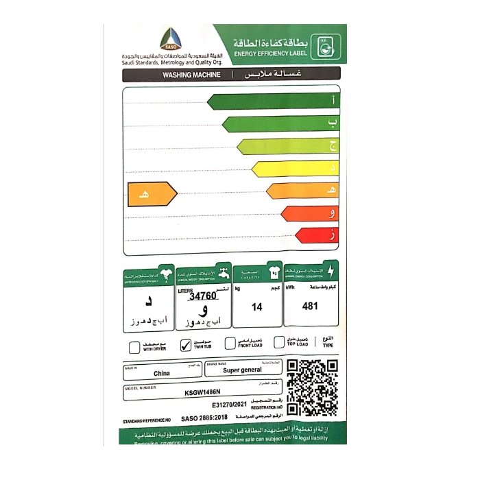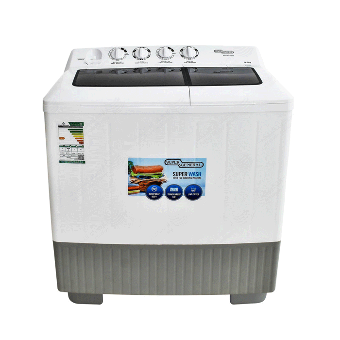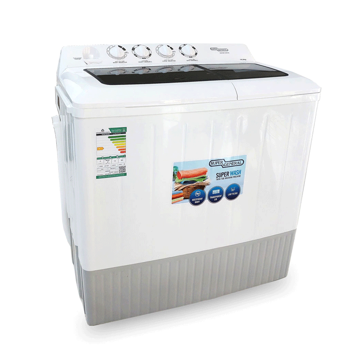 خصائص غسالة 14 كيلو حوضين سوبر جنرال – أبيض :