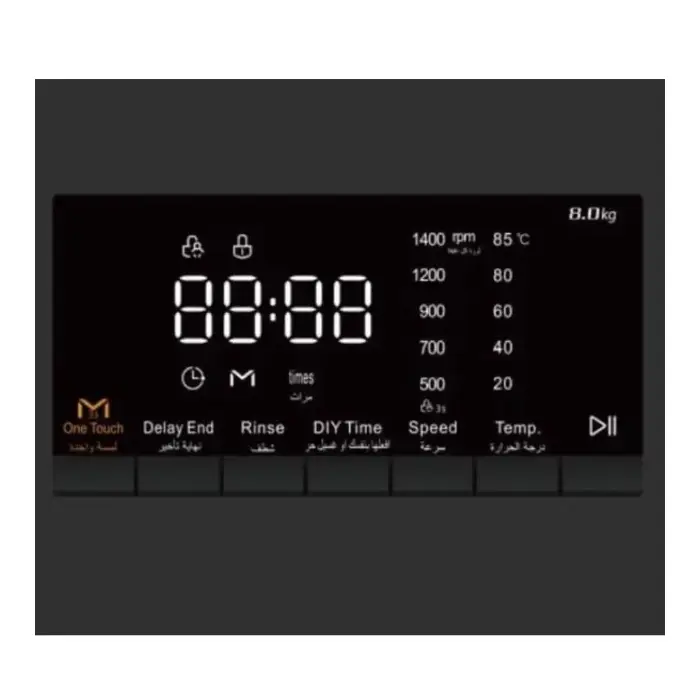 غسالة 8 كيلو سرين مزودة بشاشة عرض رقمية واضحة وسهلة الاستخدام، تتيح متابعة الإعدادات والتحكم في الوظائف المختلفة بكل دقة. تساعد الشاشة الرقمية على ضبط درجات الحرارة والخيارات بسهولة، مما يوفر تجربة استخدام مريحة وعصرية.