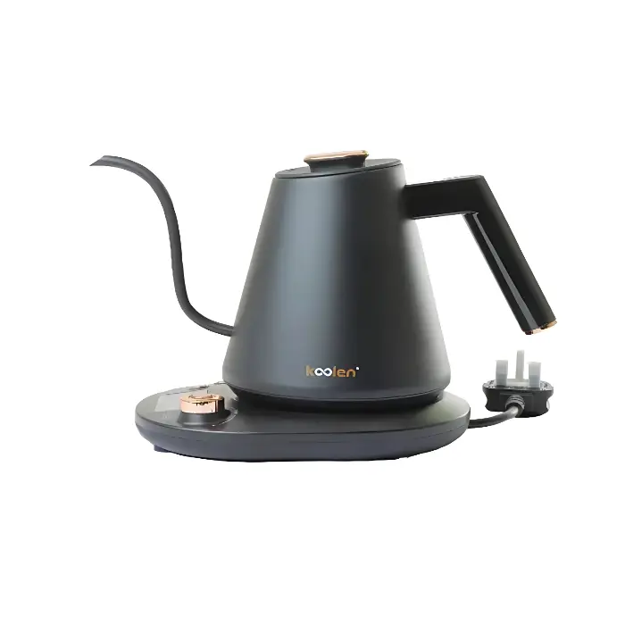 تتميز غلاية مياه كولن بتصميم عصري باللون الأسود يمنحه مظهرًا أنيقًا يناسب مختلف ديكورات المطابخ الحديثة. كما يضيف لمسة فخامة للمكان مع الحفاظ على حجم عملي وسهل الاستخدام.