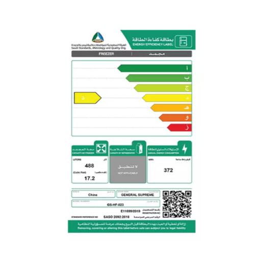 مميزات فريزر ارضي جنرال سوبريم 17.2 قدم – أبيض :