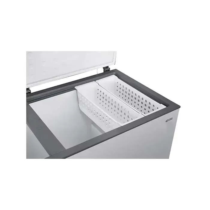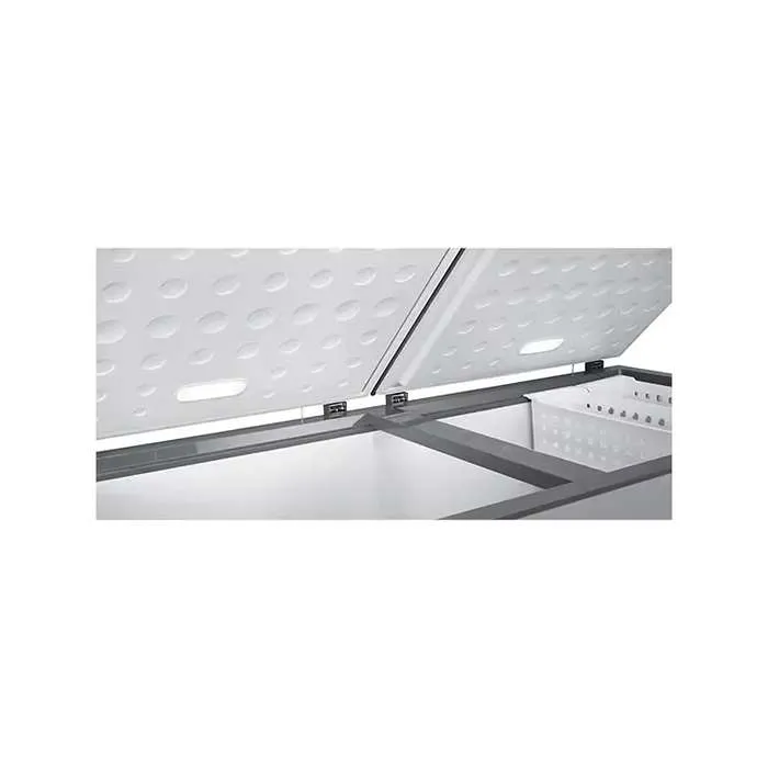 فريزر سطحي جنرال سوبريم مزوّد بتقنية تبريد قوية تضمن حفظ درجة الحرارة ثابتة في كل أرجاء الحجرة. حتى عند فتح الغطاء لفترة قصيرة، يتم استعادة البرودة بسرعة، مما يحافظ على نضارة الطعام ويمنع ذوبان الثلج داخل الفريزر. هذه التقنية تجعل الفريزر مثاليًا للأطعمة الحساسة مثل اللحوم والأسماك والفواكه المجمدة.