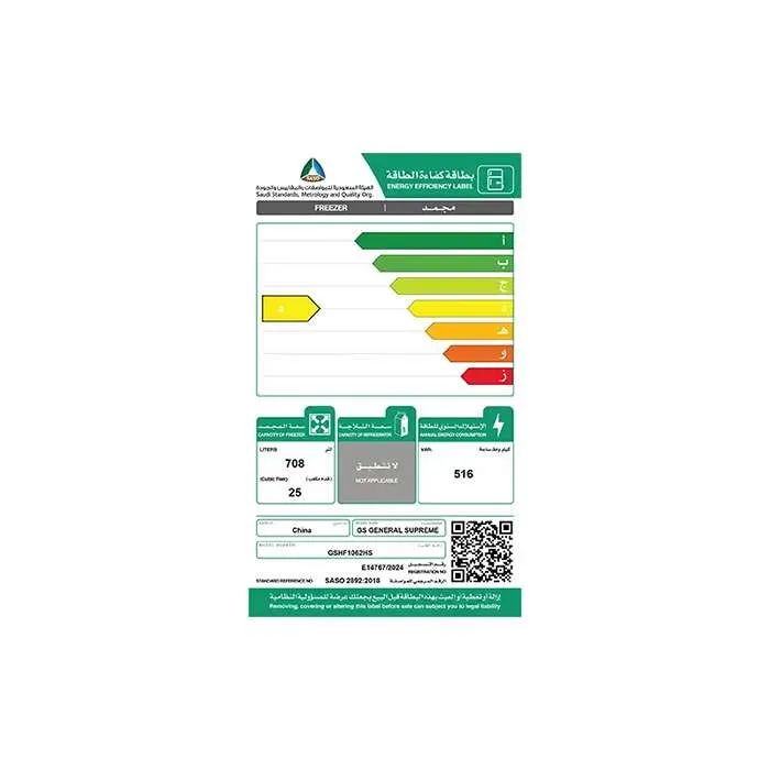 - استهلاك سنوي : 516 كيلووات/ساعة