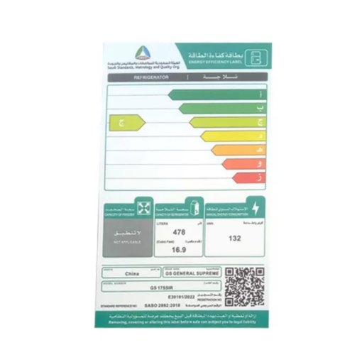 المختلفة للفتره التي تريدها مع ضمان بقاء جودتها والحفاظ على القيمة الغذائية لها كما انه مزود بصندوق لحفظ الخضراوات لأطول فترة ممكنه يتمتع فثلاجة جنرال سوبريم باب واحد بمساحة تخزين كافيه تصل إلى 478 لتر حيث يمكنك تخزين المواد الغذائية