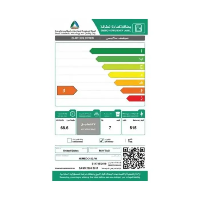 مجفف ميتاج 7 كيلو 3 مفتاح _ أبيض 4Kmedc420jw السعر الأصلي هو: 3.542 ر.س.السعر الحالي هو: 3.091 ر.س.