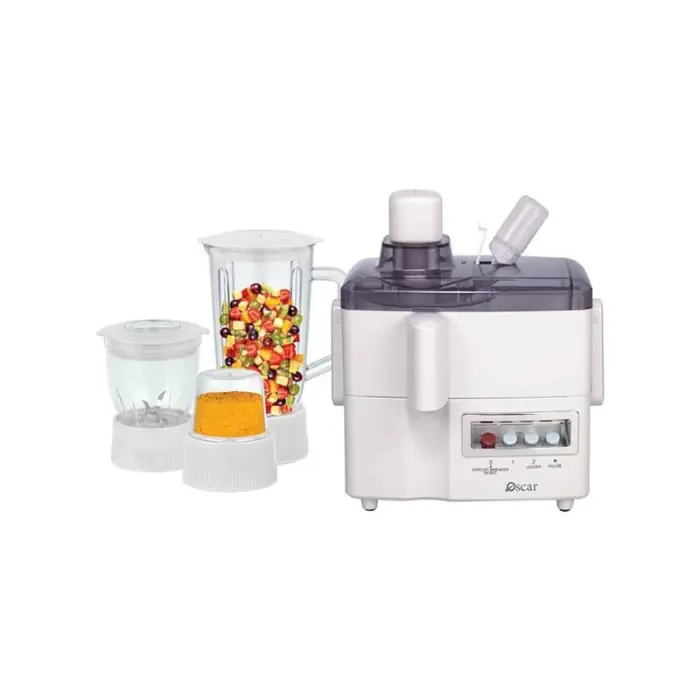 يعمل محضّر طعام اوسكار استخدامات 4×1، حيث يجمع بين الخلاط، والفرّامة، والمطحنة، والصّارة في جهاز واحد. هذا يتنوع لتوفير المساحة والوقت والجهد، مما يجعل الجهاز مناسبًا لتحضير الأشياء المختلفة بسهولة.