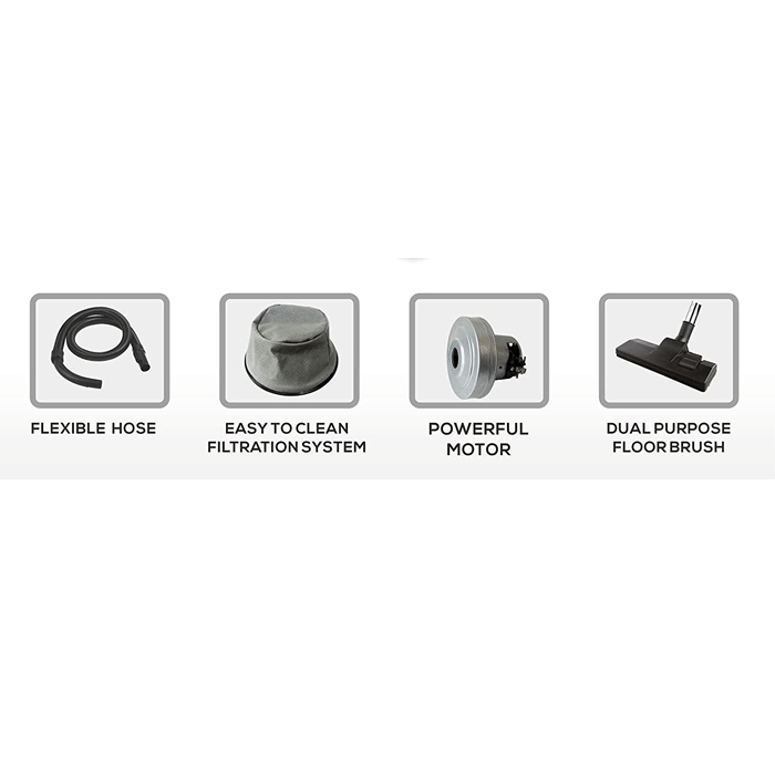 مكنسة برميل سهم 21 لتر 2000 وات مزودة بفرشاة أرضية تتكون من جزئين يعملان معًا لتنظيف الأرضيات بشكل أكثر فعالية كما تساعد على إزالة الأوساخ العميقة من السجاد والمفروشات كما تُمكن فرشاة الأرضية المزدوجة من تنظيف مختلف أنواع الأرضيات، مثل السجاد والبلاط والخشب