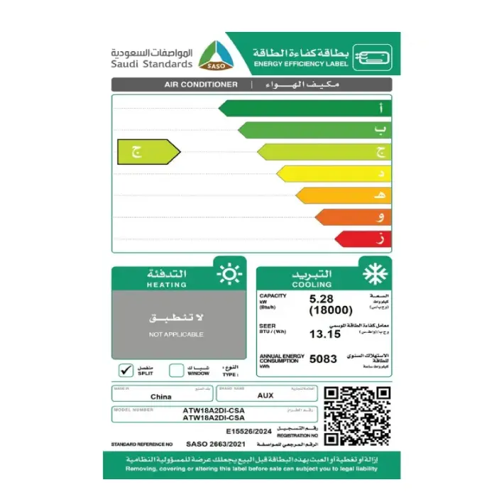 - القدرة الاسمية : 1.5 طن