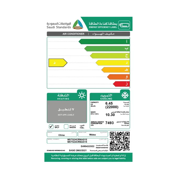 مكيف اسبلت ميديا سوبر كول 22000 وحدة ــ بارد MSTS24CRNAG15