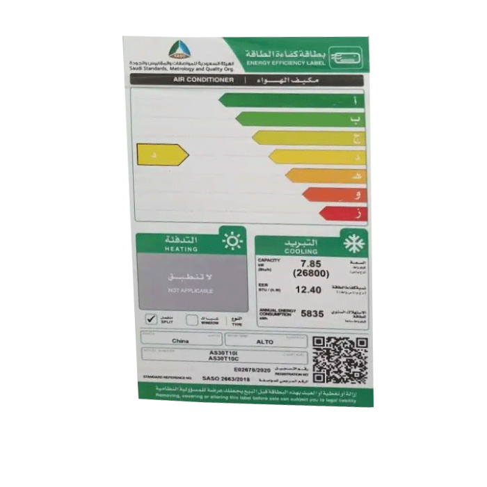 مواصفات مكيف سبلت التو 26800 وحدة – بارد :